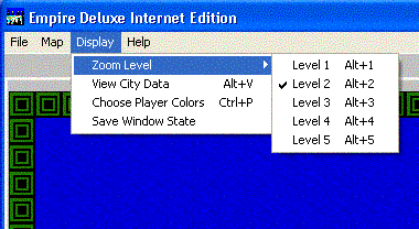 Display menu allows you to select how the Empire Deluxe Game Editor is