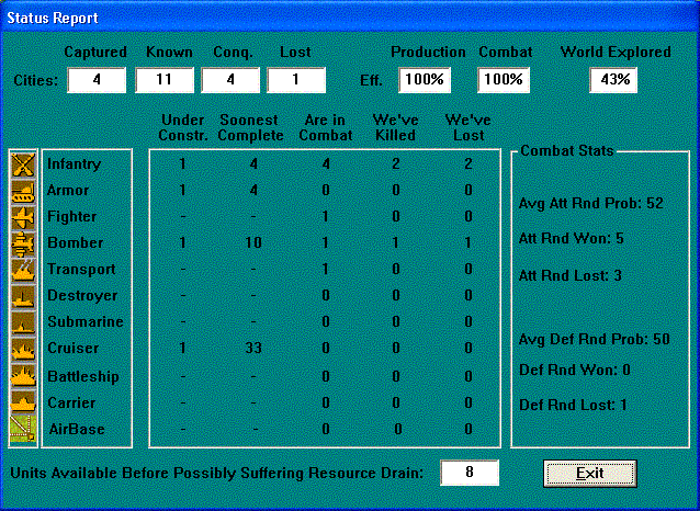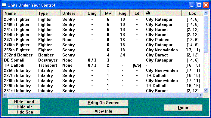 [Alt + V] – (Advanced Game Only) This option will toggle city data