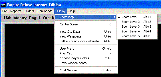 Display menu allows you to select how Empire Deluxe Internet Edition is