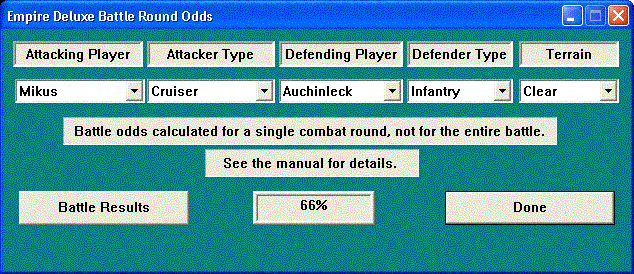 the Attacking Unit type, the Defending Player (for handicap differences),