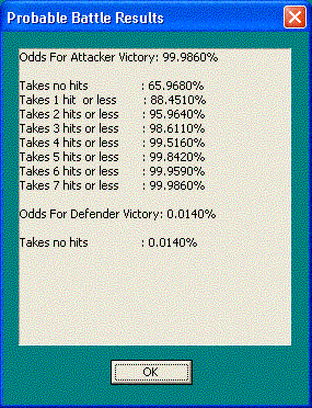 the Cruiser attacking an infantry has a 99.9860% chance of defeating the